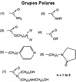 que contienen grupos polares, tales como aminas, amidas, iminas,